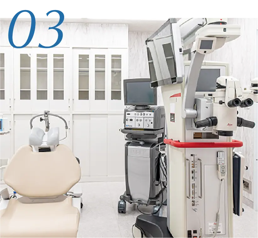 白内障手術は術前評価と手術環境が仕上がりに影響する治療です。 当院では、大学病院や基幹病院で使用されている水準の 手術機器・検査設備を導入し、精度の高い判断と手術を行っています。