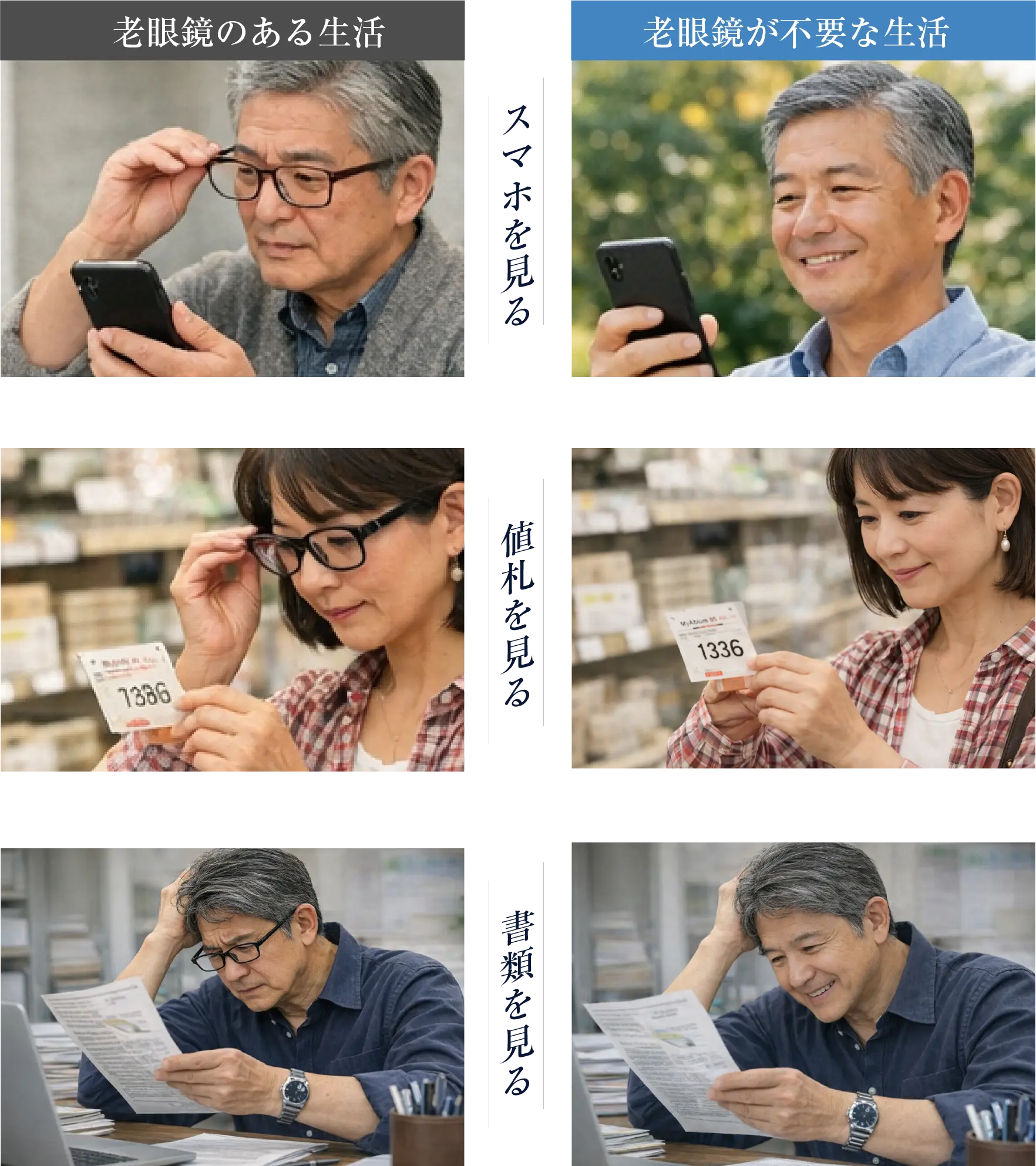 遠くは見えるが近くは老眼鏡が必要になる場合がある